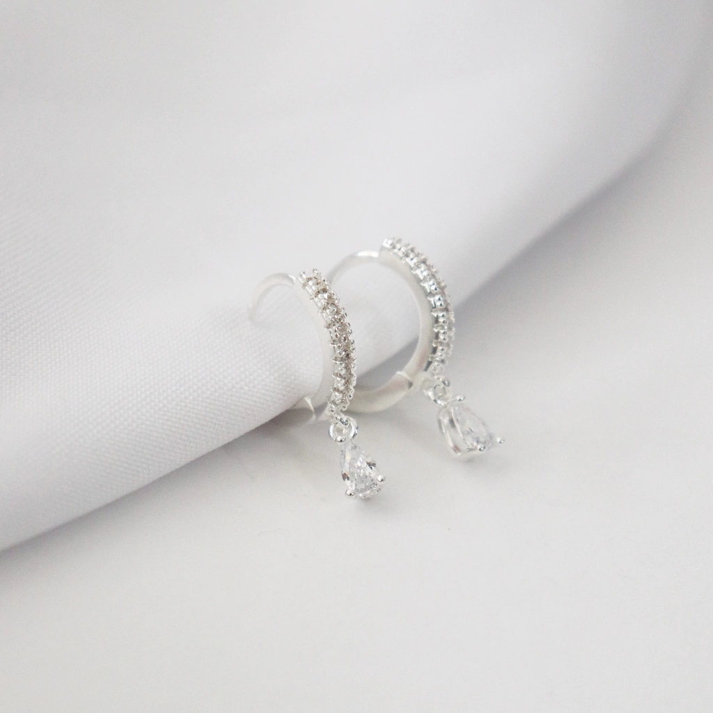 Argolinha de click, cravejada de zircônias, com pingente oval de zircônia.