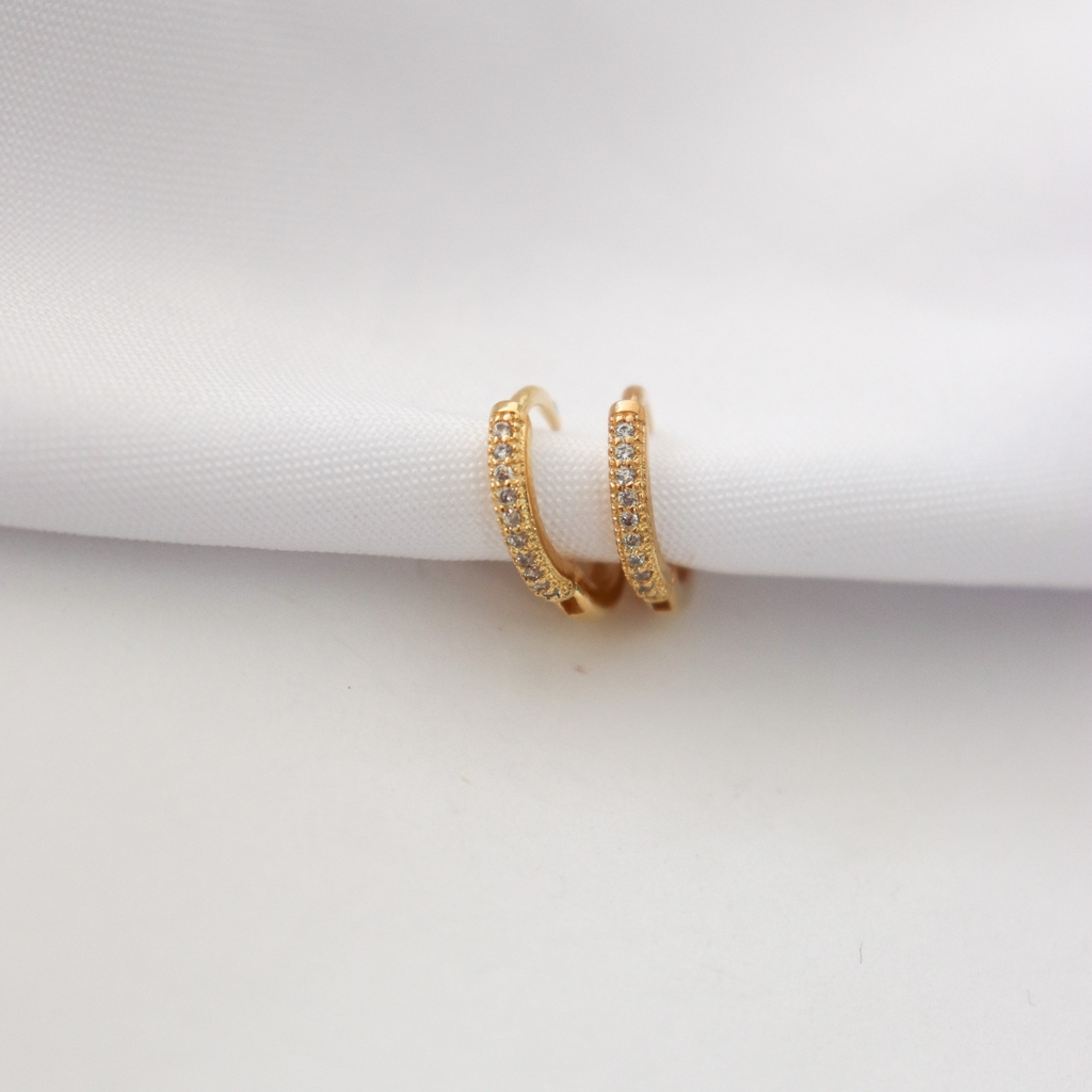 Argolinha pequena de click, cravejada com zircônias. Peça que agrada das mais clássicas às mais modernas, modelo campeã de venda desde o começo da marca.