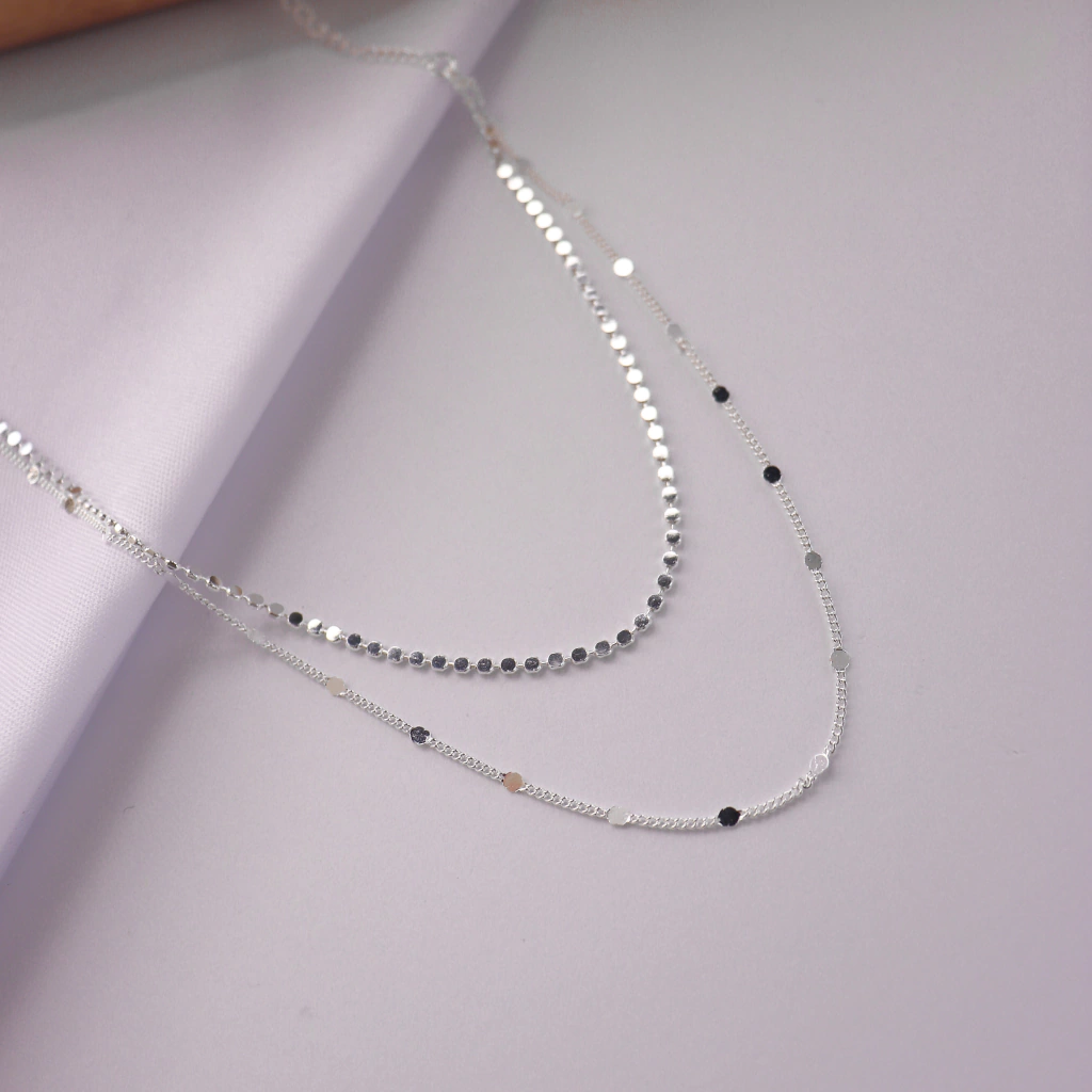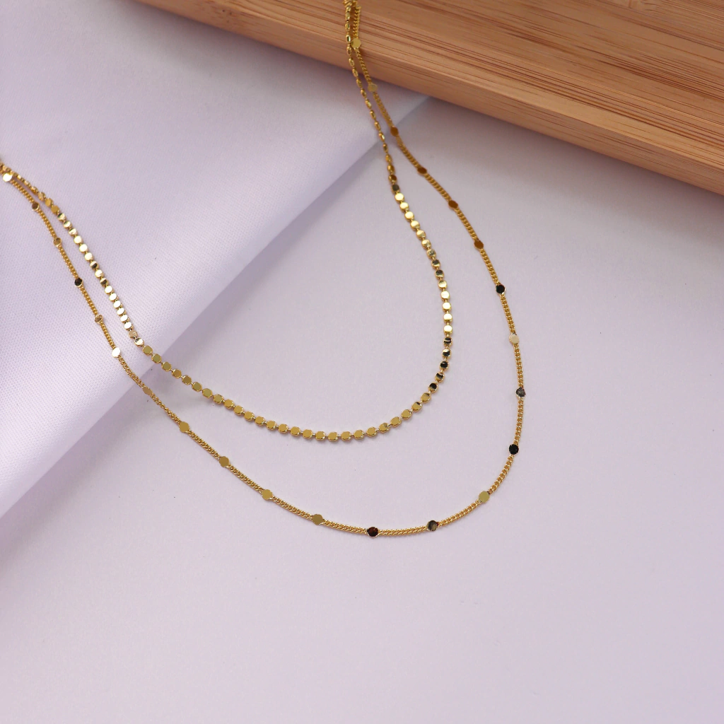 Choker com 2 voltas. Um com modelo de mini circulos, e outro com veneziana simples com detalhes em circulos.