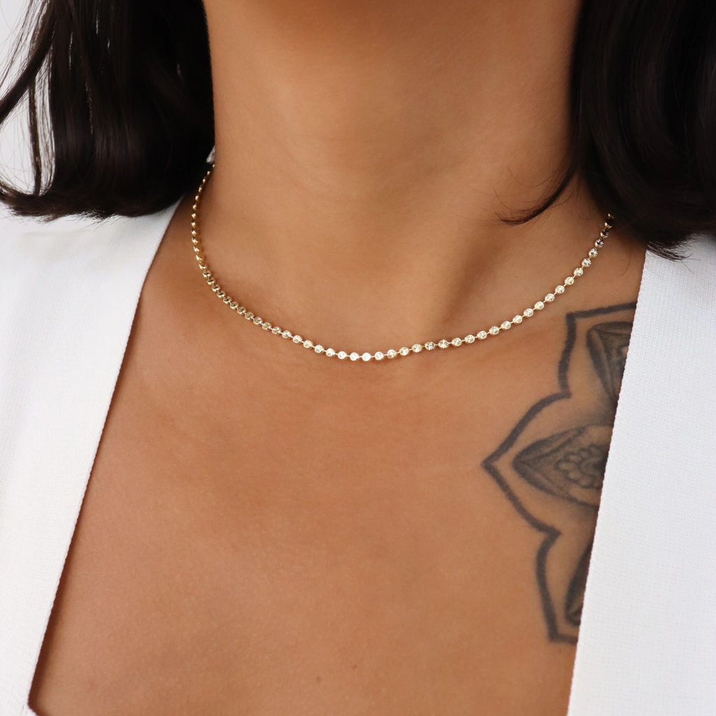 Choker com mini circulos, e detalhes brilhosos.