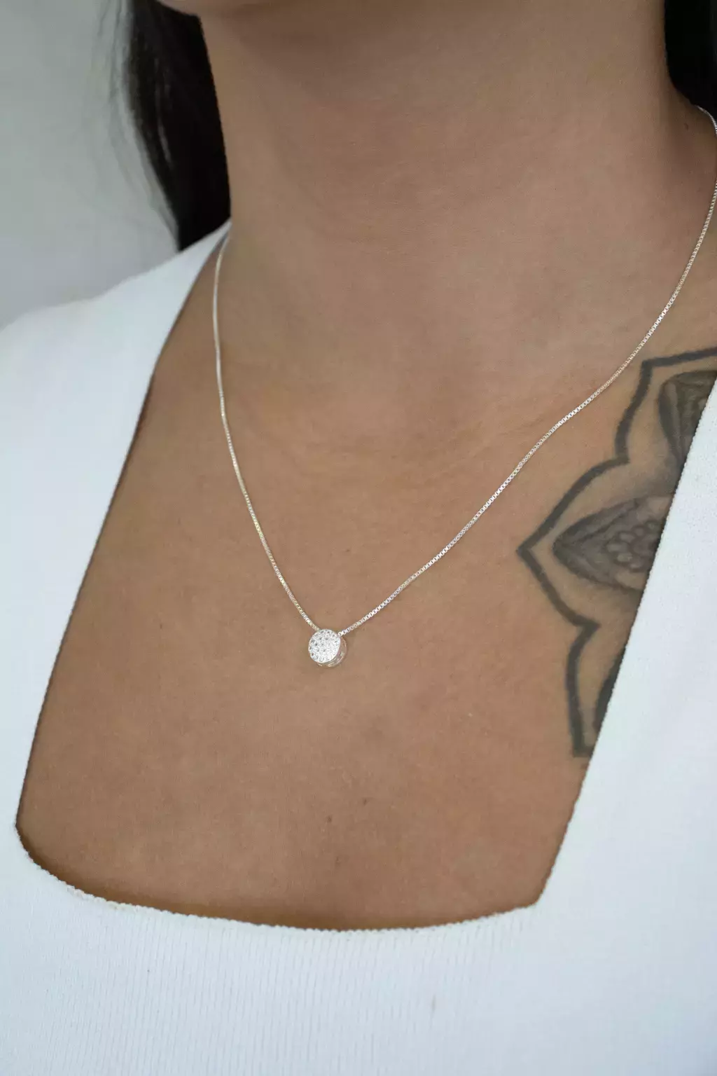 CORDÃO PINGENTE ESFERA CRAVEJADA